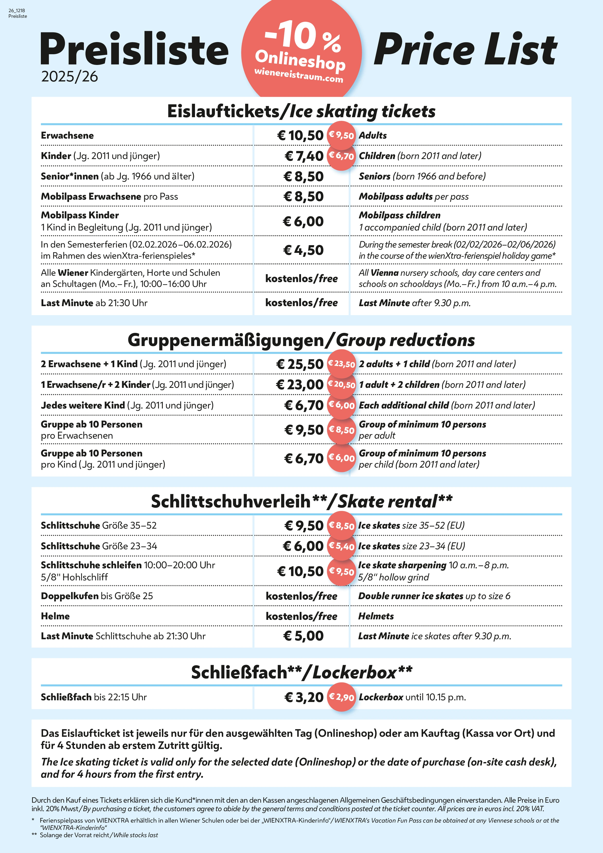 | 身份 | 原價(歐元) | 線上價格(歐元) |