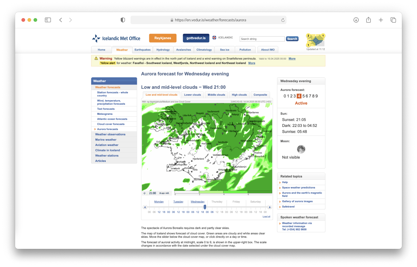 我們最推薦的網站是冰島氣象局網站 Icelandic Met Office 的極光預測頁面。